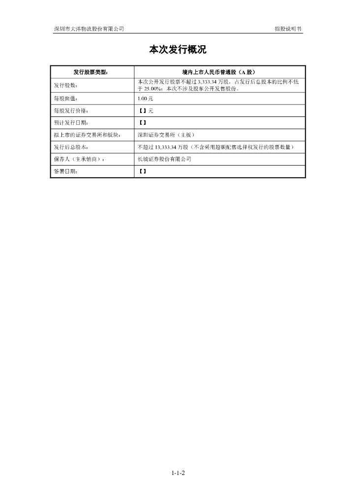 深圳市大洋物流股份有限公司深交所主板IPO上市招股说明书.pdf