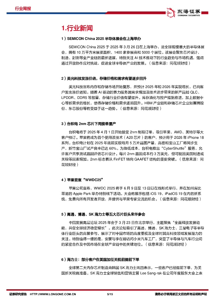 东海证券:电子行业周报:Semicon展会中国半导体设备产业光彩四溢,存储龙头释放涨价预期.pdf
