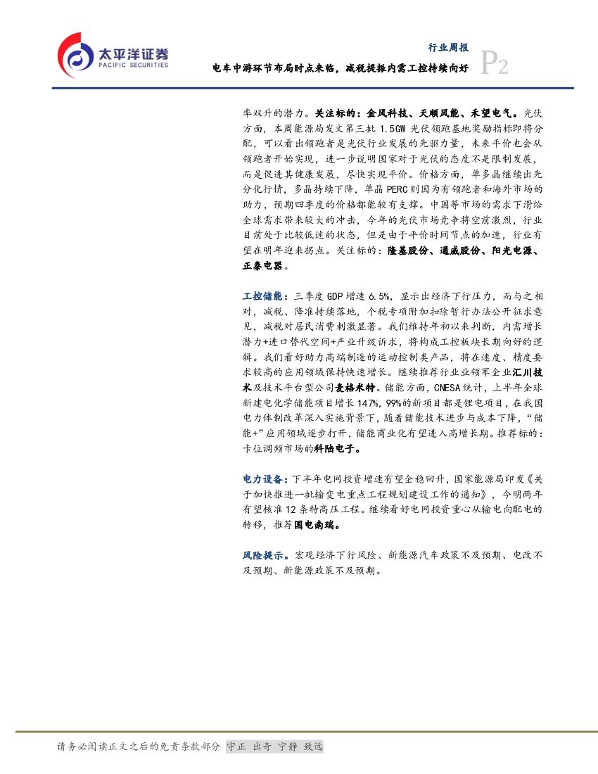 太平洋证券:电气设备行业周报:电车中游环节布局时点来临,减税提振内需工控持续向好.pdf