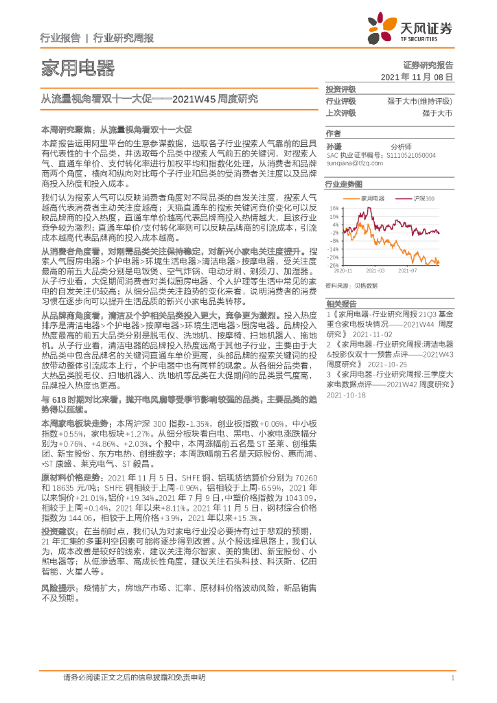 天风证券:家用电器2021W45周度研究:从流量视角看双十一大促.pdf