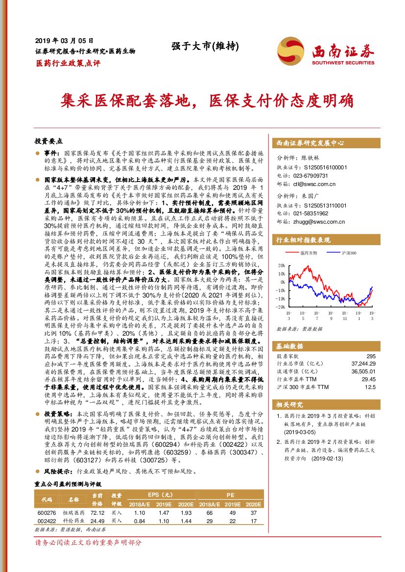 西南证券:医药行业政策点评:集采医保配套落地,医保支付价态度明确.pdf