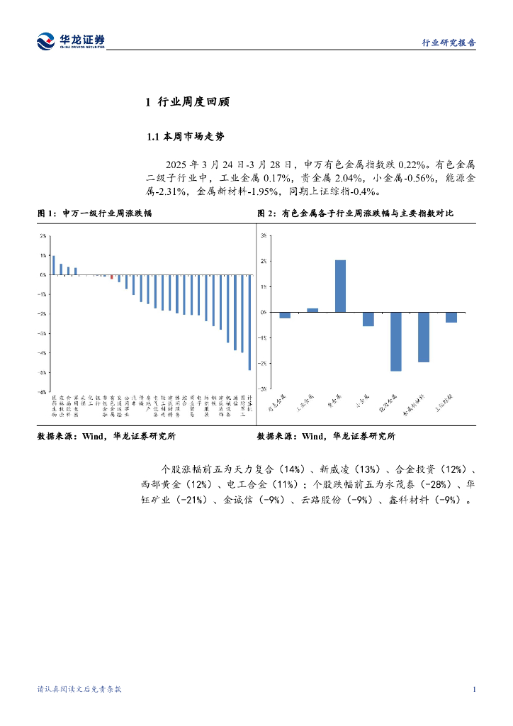 华龙证券:有色金属行业周报:黄金向上动能较强,工业金属预期回暖.pdf