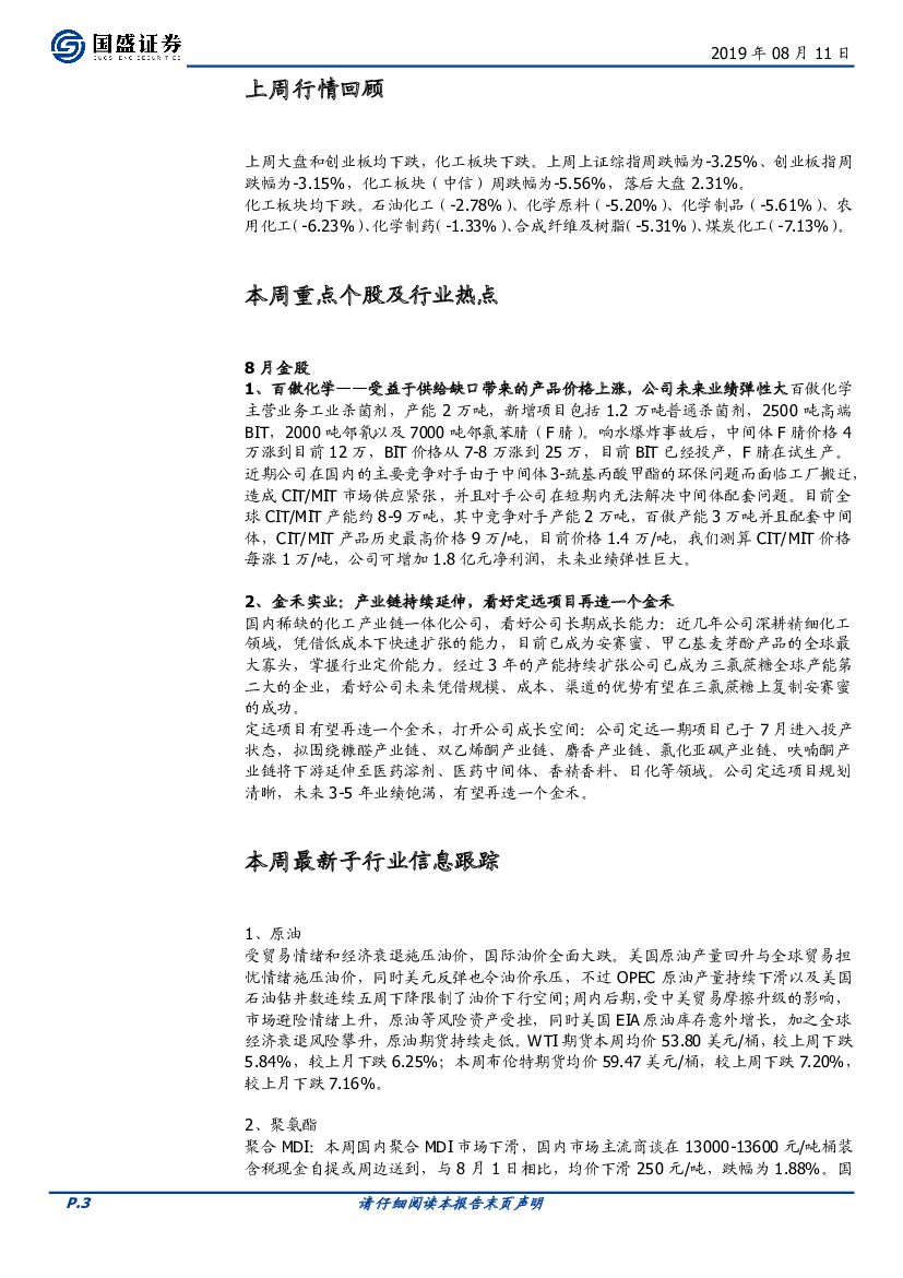 国盛证券:化工行业周报:继续看好周期低点具备成长能力的优质精细化工龙头公司.pdf