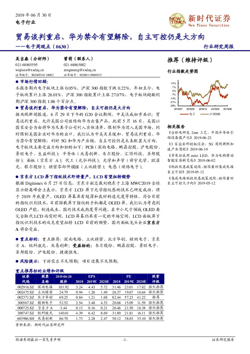 新时代证券:电子周观点:贸易谈判重启、华为禁令有望解除,自主可控仍是大方向.pdf