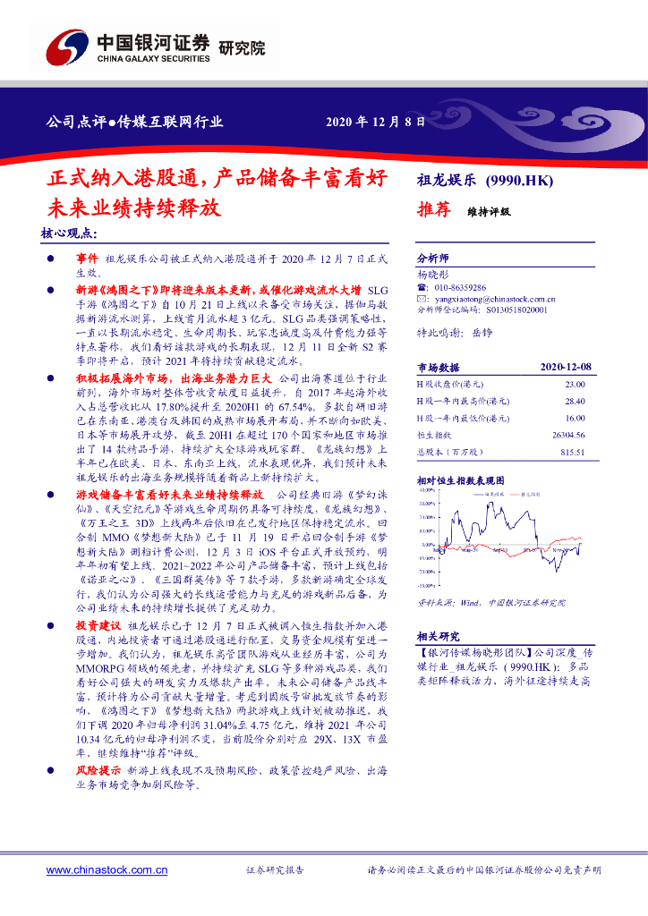 中国银河:祖龙娱乐(09990)港股公司研究报告-正式纳入港股通,产品储备丰富看好未来业绩持续释放.pdf