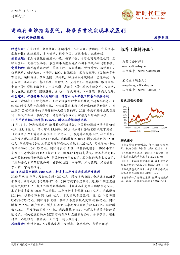 新时代证券:新时代传媒周报:游戏行业维持高景气,拼多多首次实现季度盈利.pdf