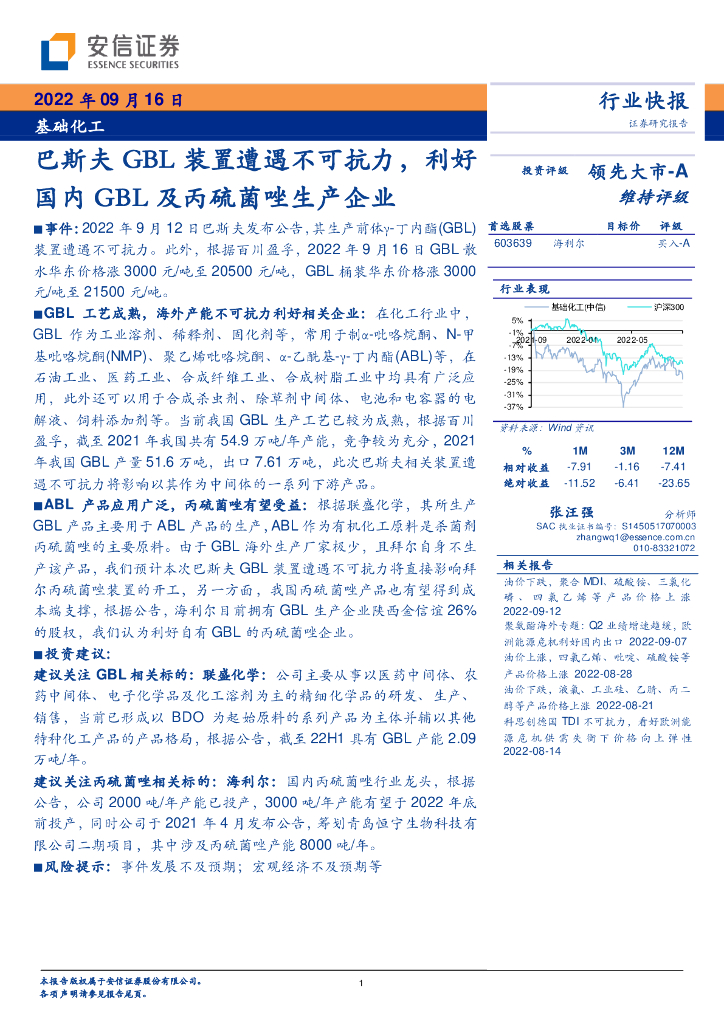 安信证券:基础化工行业快报:巴斯夫GBL装置遭遇不可抗力,利好国内GBL及丙硫菌唑生产企业.pdf