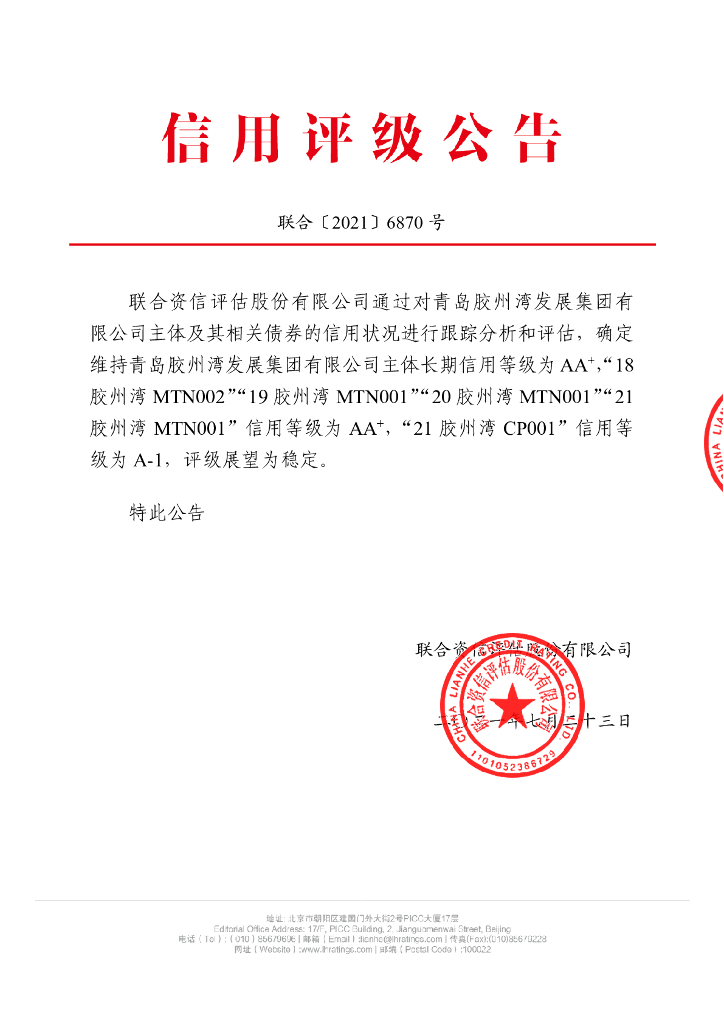 联合资信:青岛胶州湾发展集团有限公司2022年度第一期超短期融资券主体评级报告.pdf