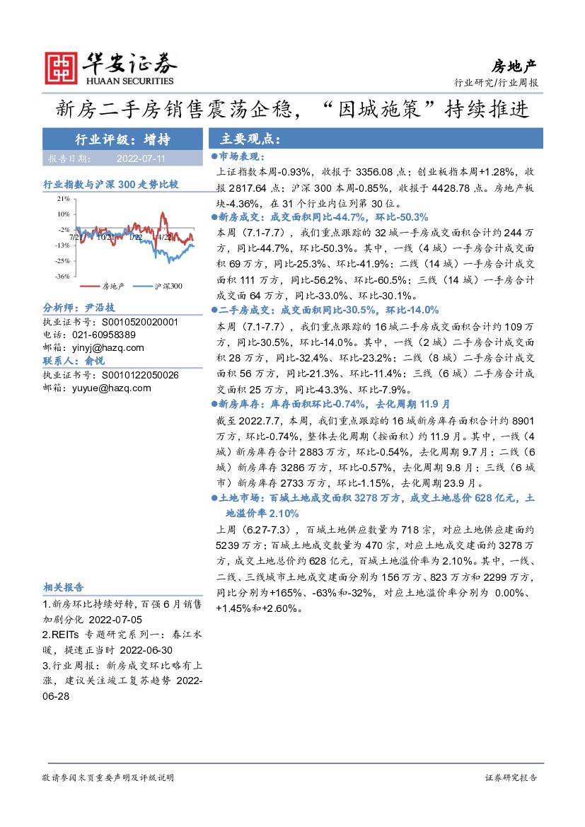 华安证券:房地产行业周报:新房二手房销售震荡企稳,“因城施策”持续推进.pdf