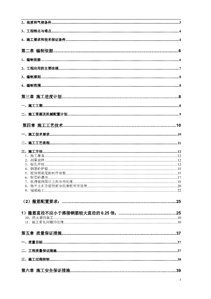 抗滑桩加冠梁以及排水沟施工组织设计方案.doc