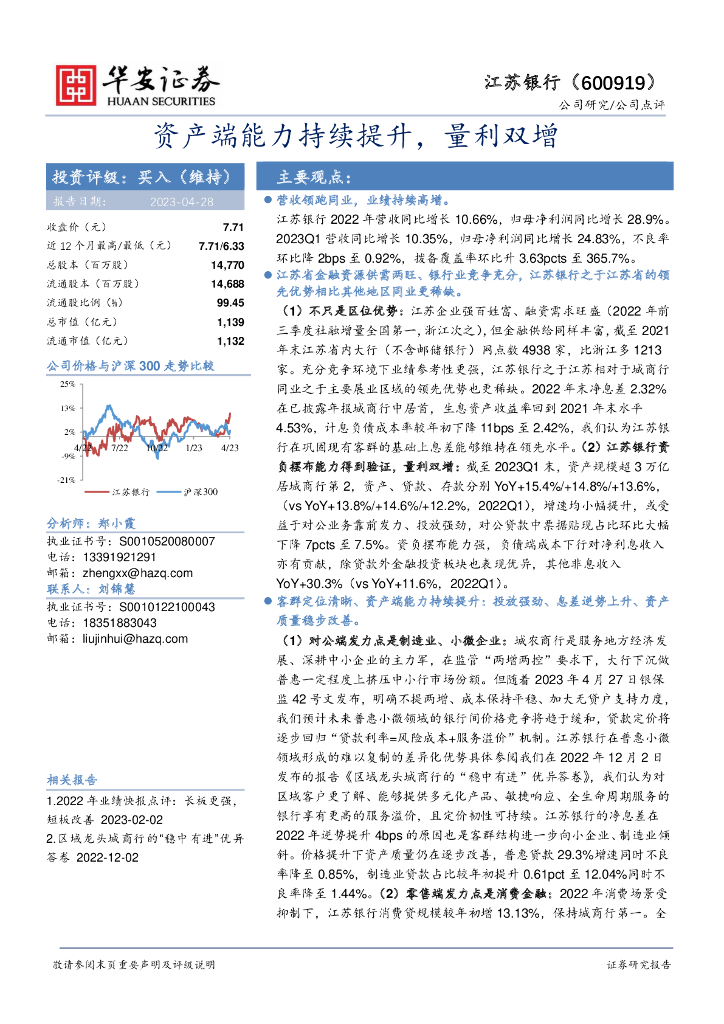 华安证券:江苏银行(600919)-资产端能力持续提升,量利双增.pdf
