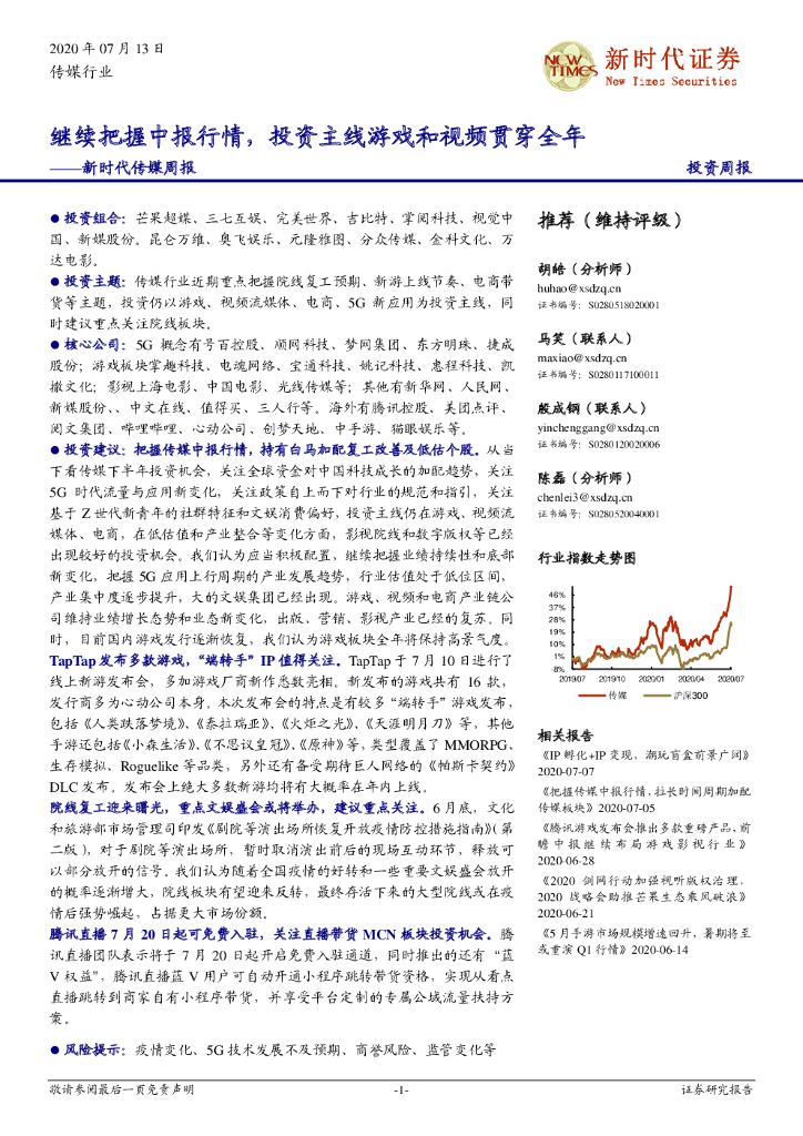 新时代证券:传媒周报:继续把握中报行情,投资主线游戏和视频贯穿全年.pdf