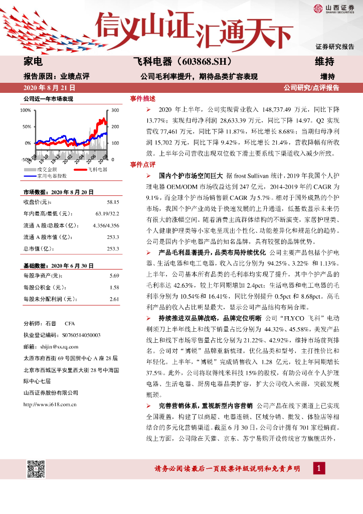 山西证券:飞科电器(603868)-公司毛利率提升,期待品类扩容表现.pdf