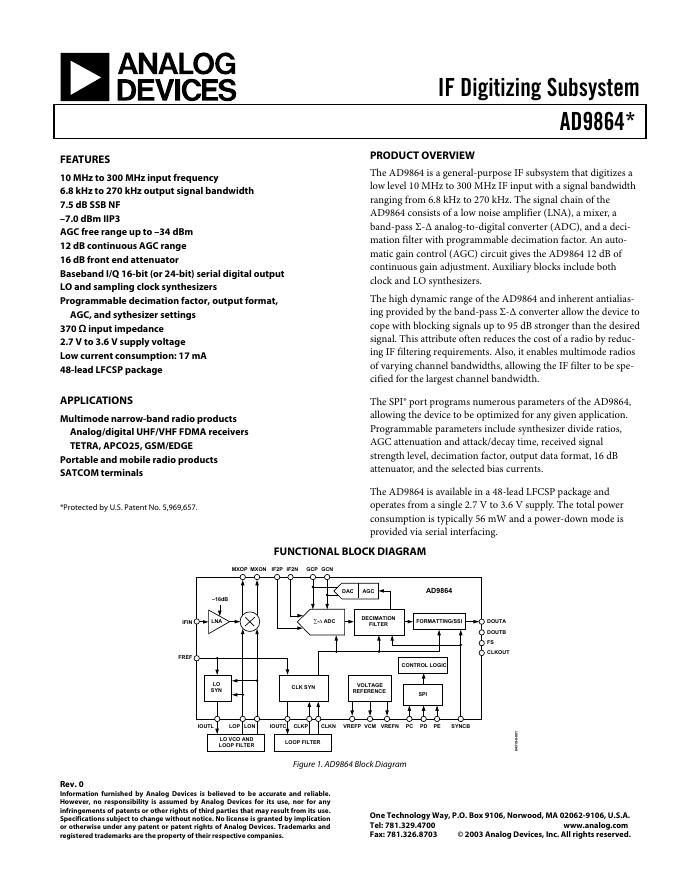 ANALOG DEVICES AD9864 英文产品数据手册.pdf