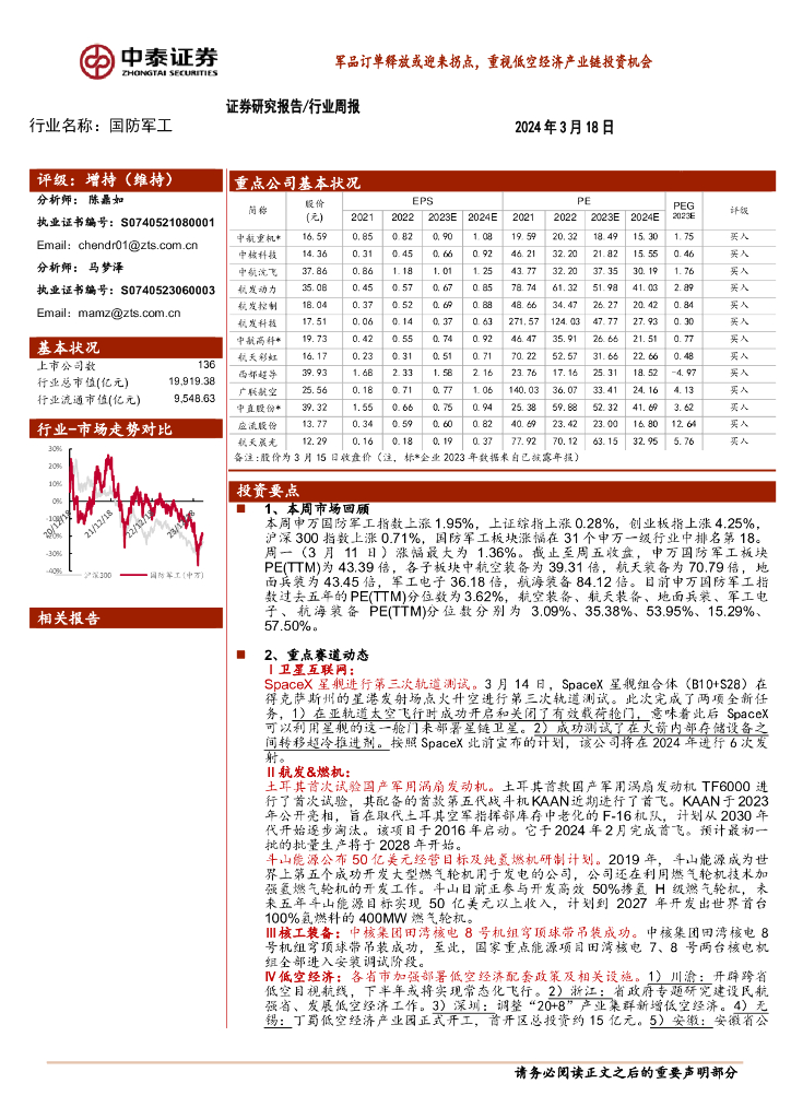 中泰证券:国防军工行业周报:军品订单释放或迎来拐点,重视低空经济产业链投资机会.pdf