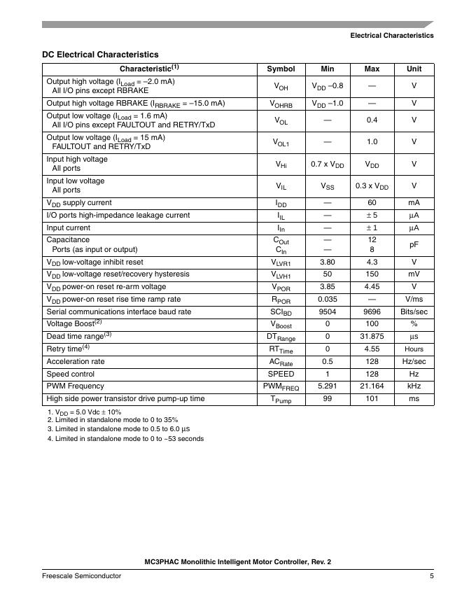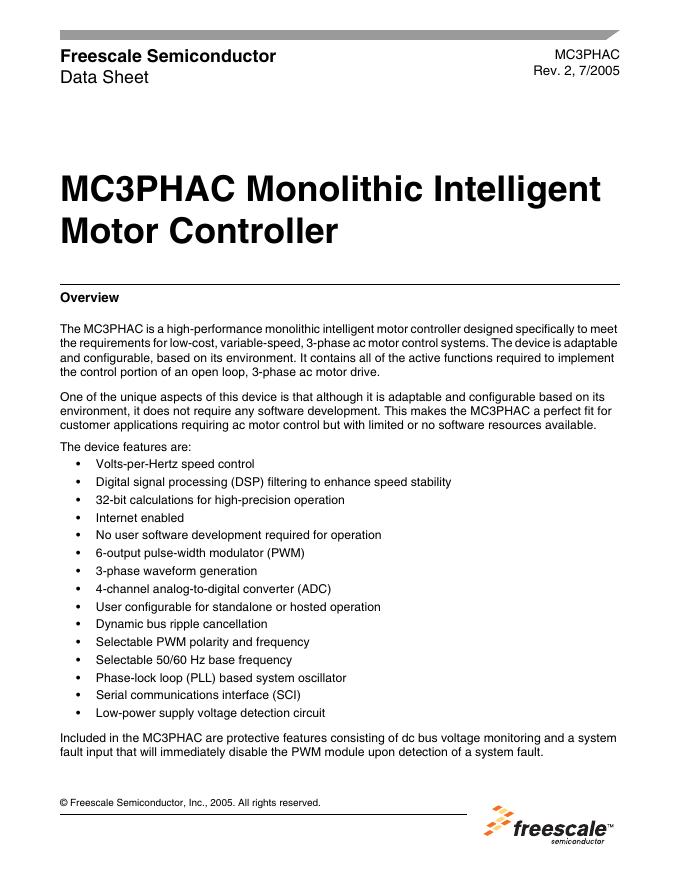 FREESCALE SEMICONDUCTOR MC3PHAC Monolithic Intelligent Motor Controller 数据手册.pdf