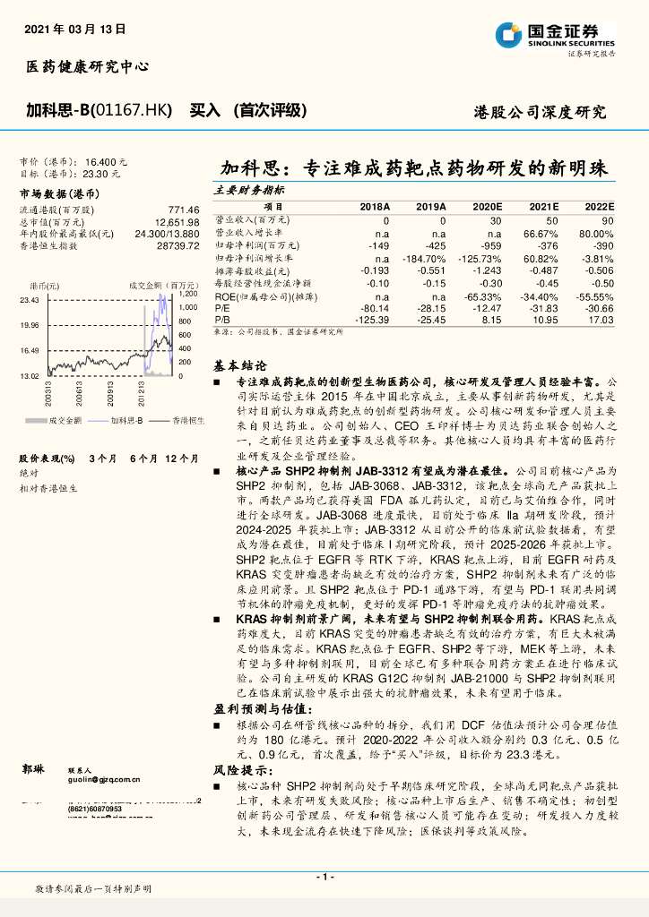 国金证券:加科思-B(01167)港股公司研究报告-加科思:专注难成药靶点药物研发的新明珠.pdf