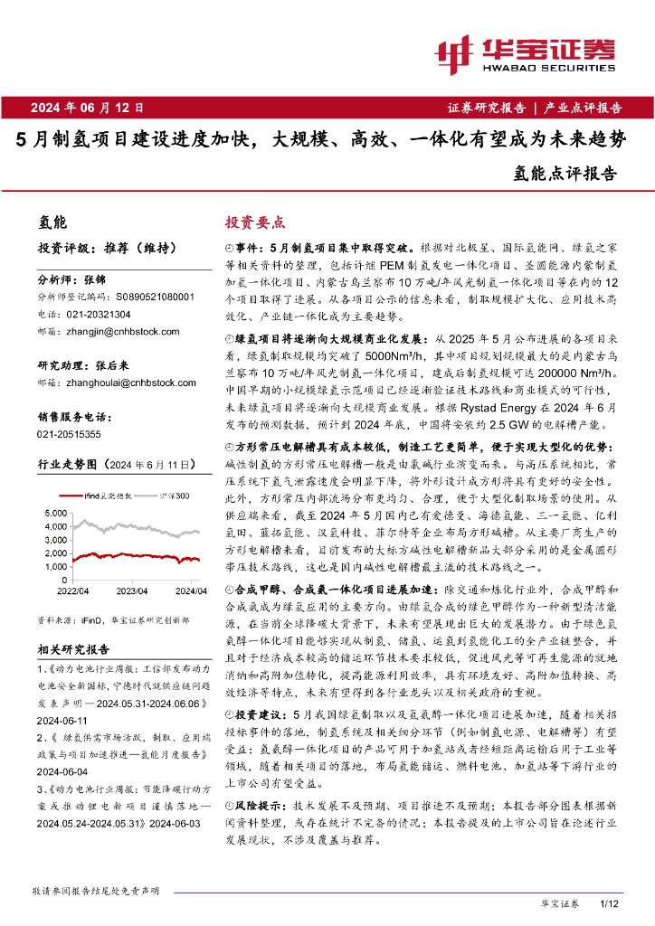 华宝证券:氢能点评报告:5月制氢项目建设进度加快,大规模、高效、一体化有望成为未来趋势.pdf