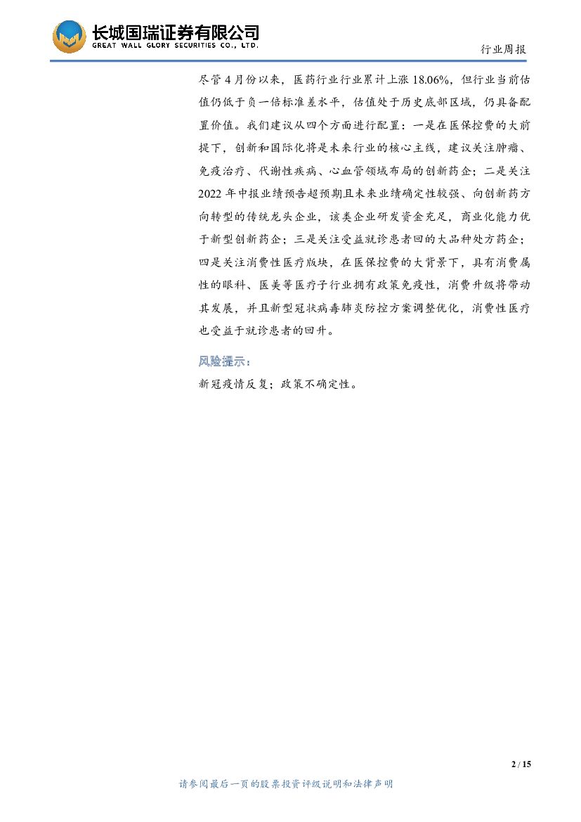 长城国瑞证券:医药生物行业双周报2022年第14期总第63期:新型冠状病毒肺炎防控方案优化 行业估值仍具配置价值.pdf