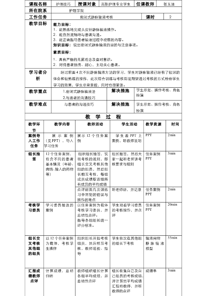 《护理技巧》电子教案-子任务五 静脉输液综合案例考核.pdf