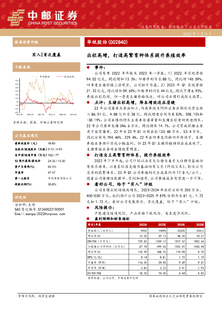 中邮证券:华统股份(002840)-出栏高增,打造高繁育种体系提升养殖效率.pdf