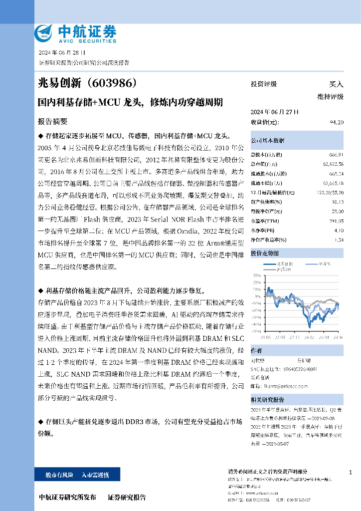 中航证券:兆易创新(603986)-国内利基存储+MCU龙头,修炼内功穿越周期.pdf