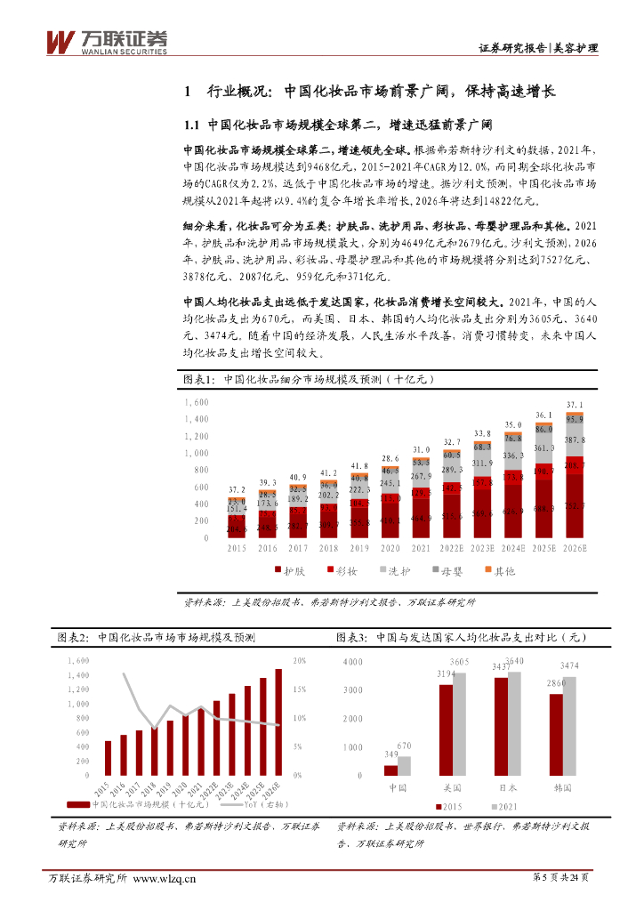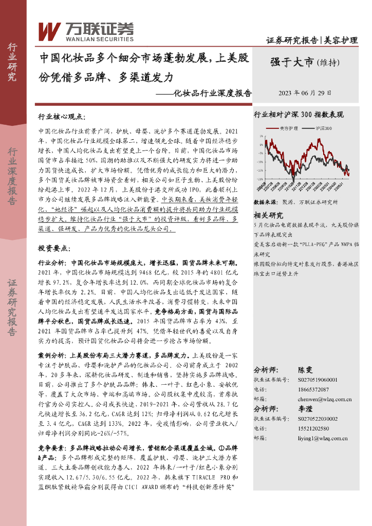 万联证券:化妆品行业深度报告:中国化妆品多个细分市场蓬勃发展,上美股份凭借多品牌、多渠道发力.pdf