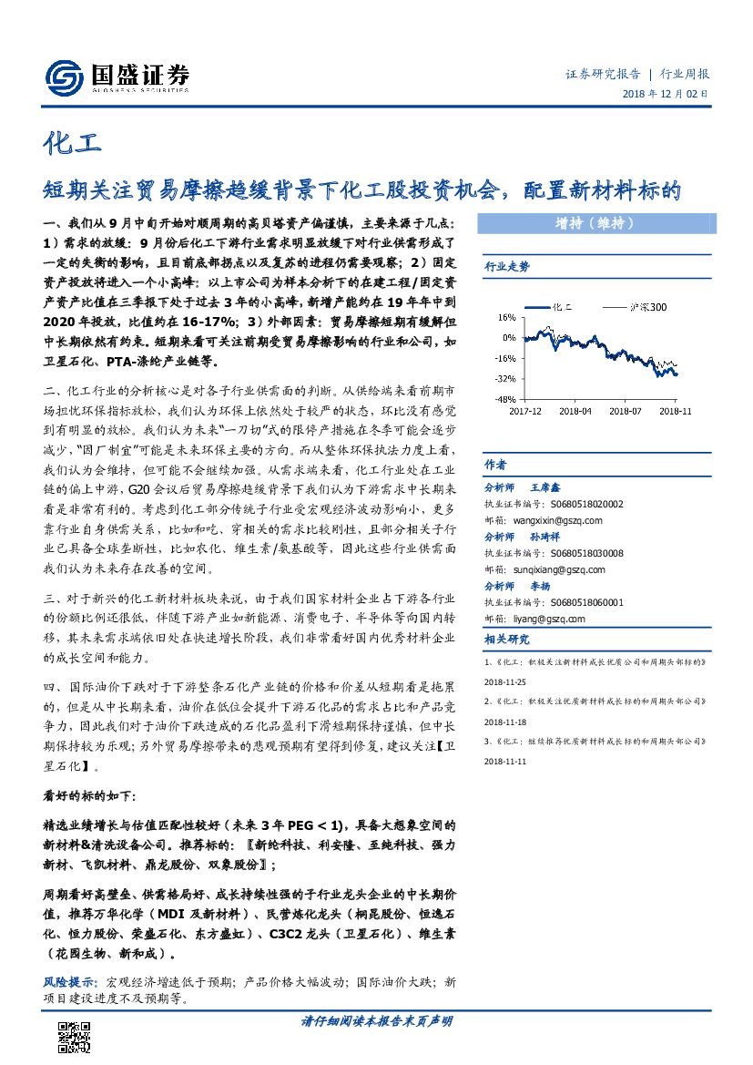 国盛证券:化工行业周报:短期关注贸易摩擦趋缓背景下化工股投资机会,配置新材料标的.pdf