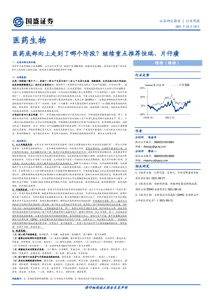 国盛证券:医药生物行业周报:医药底部向上走到了哪个阶段?继续重点推荐恒瑞、片仔癀.pdf