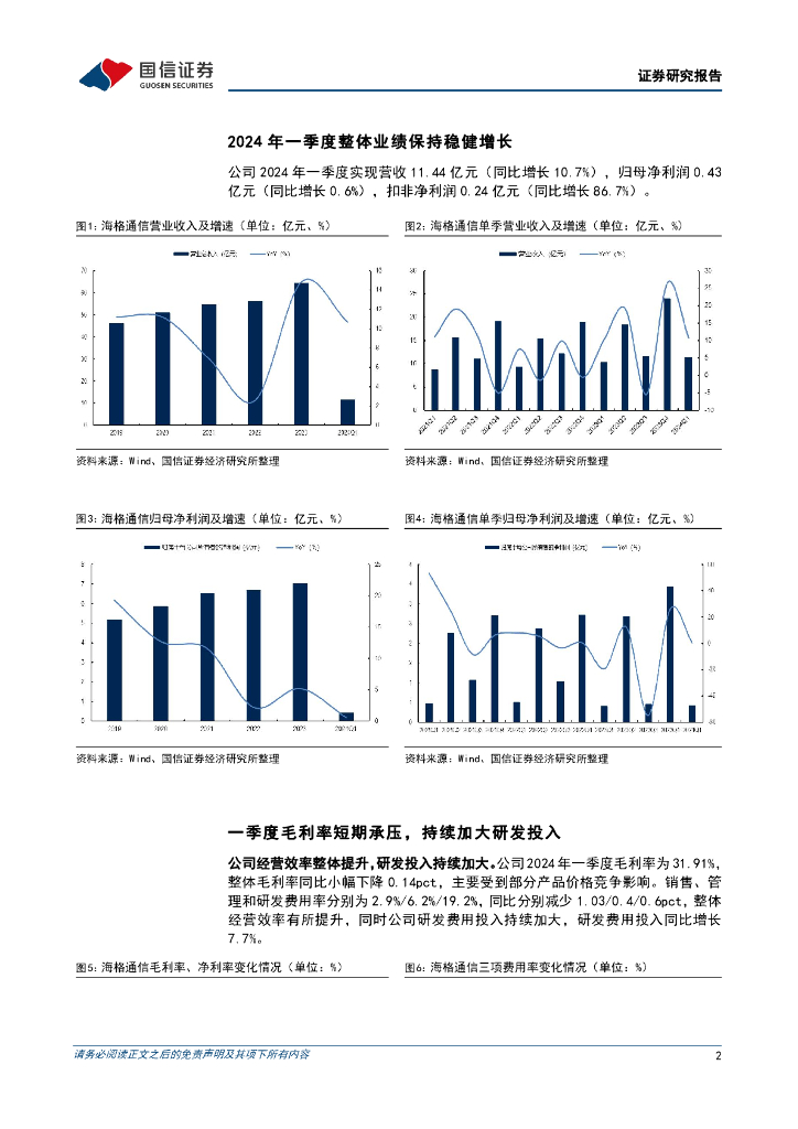 国信证券:海格通信(002465)-一季度营收增长11%,经营效率稳步提升.pdf