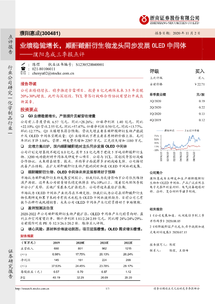 浙商证券:濮阳惠成三季报点评:业绩稳健增长,顺酐酸酐衍生物龙头同步发展OLED中间体.pdf