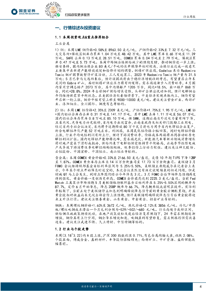 国金证券:有色金属行业大宗及贵金属周报:FOMC会议强化降息预期,推动金价上行.pdf