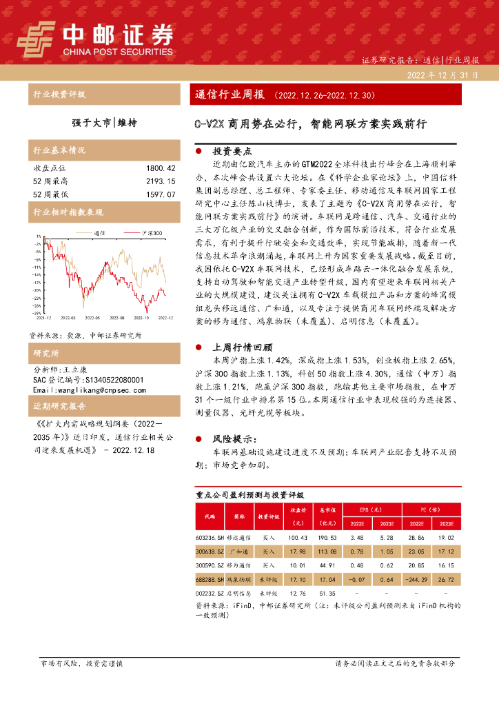 中邮证券:通信行业周报:C-V2X商用势在必行,智能网联方案实践前行.pdf
