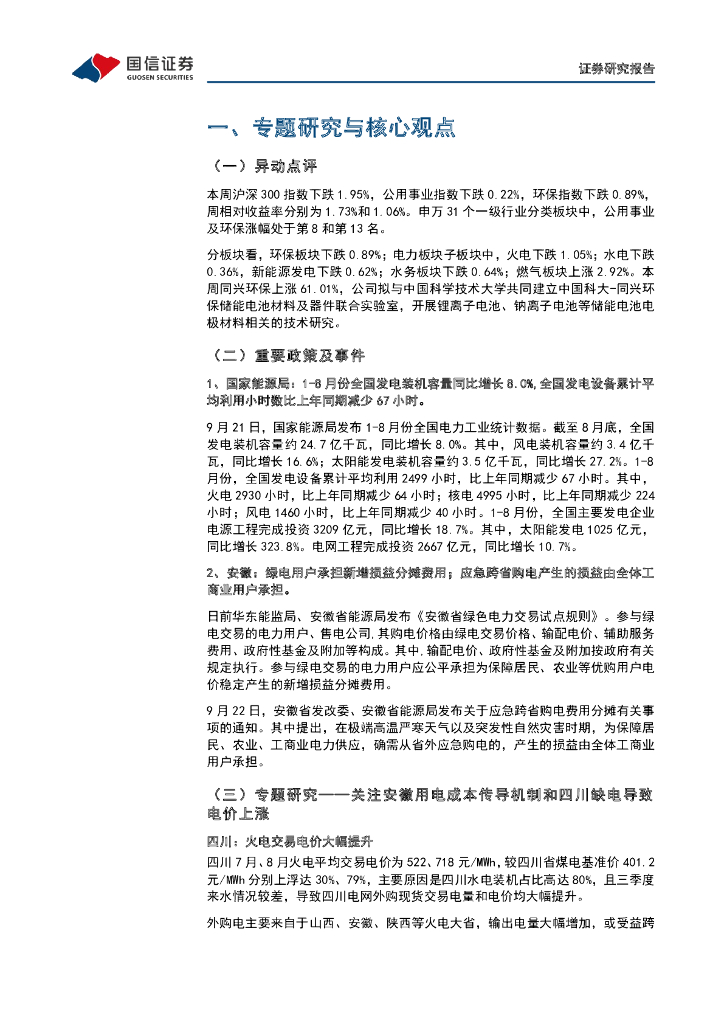 国信证券:环保与公用事业202209第4期:多省外应急购电成本由工商业用户分摊,成本传导机制逐渐明确.pdf