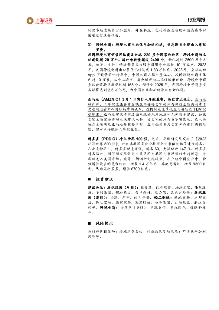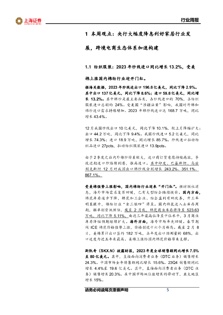 上海证券:纺织服饰行业周报:23年我国纱线进口同增13.2%,央行大幅度降息利好家居行业发展.pdf