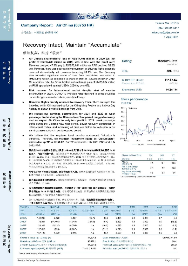 国泰君安证券(香港):中国国航(00753)港股公司研究报告-继续复苏,维持“收集”.pdf