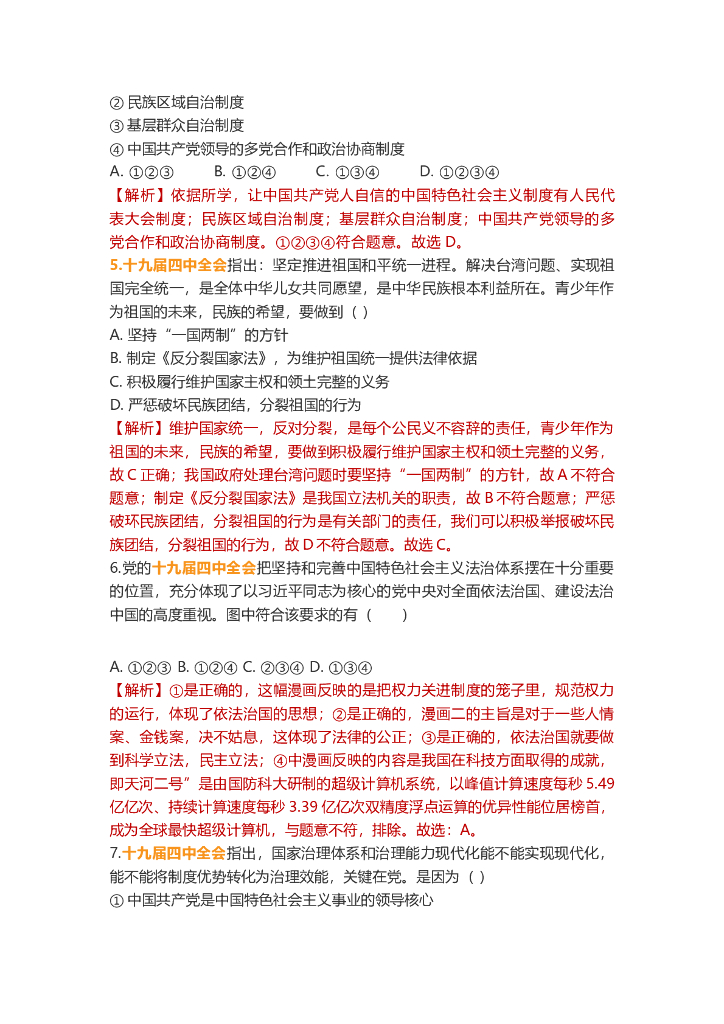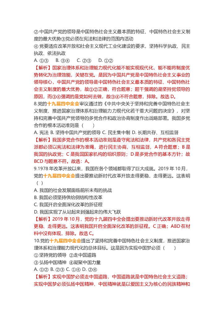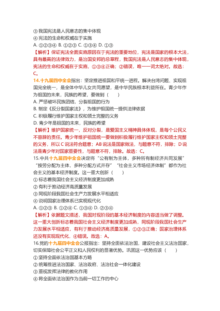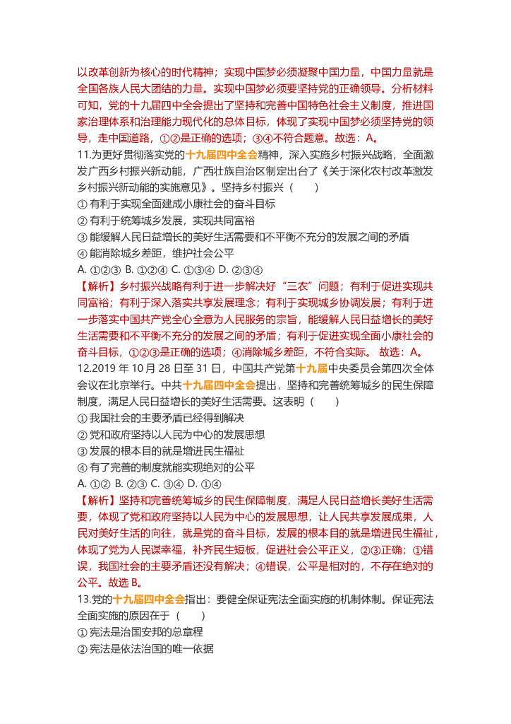 道德与法治中考重点词练习:中共十九届四中全会.doc