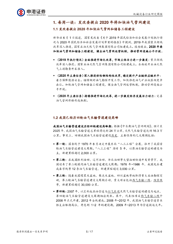 申港证券:机械设备行业周报:发改委提出2020年将加快油气管网建设.pdf