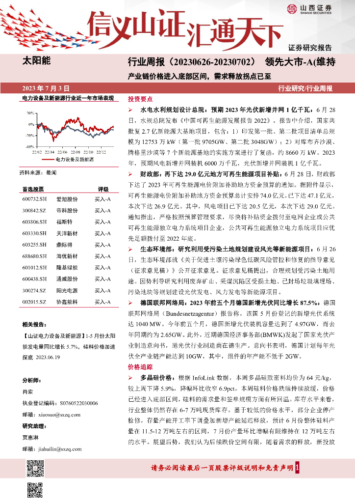 山西证券:太阳能行业周报:产业链价格进入底部区间,需求释放拐点已至.pdf