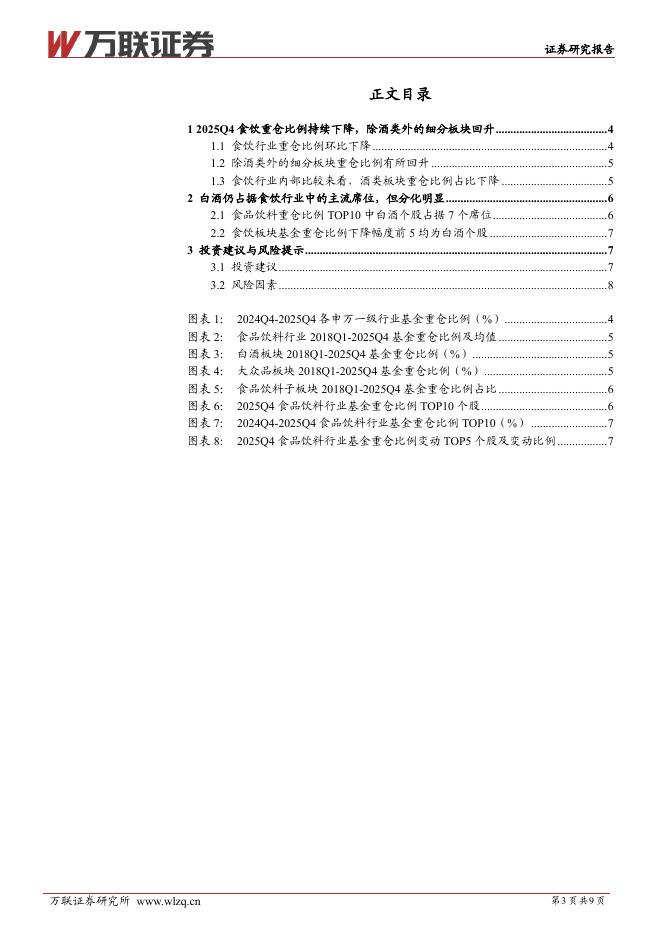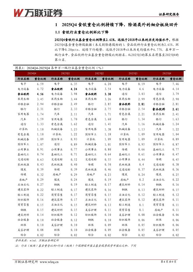 万联证券:食品饮料行业2025Q4基金持仓分析:食饮重仓比例持续下降,除酒类外的细分板块重仓比例回升.pdf