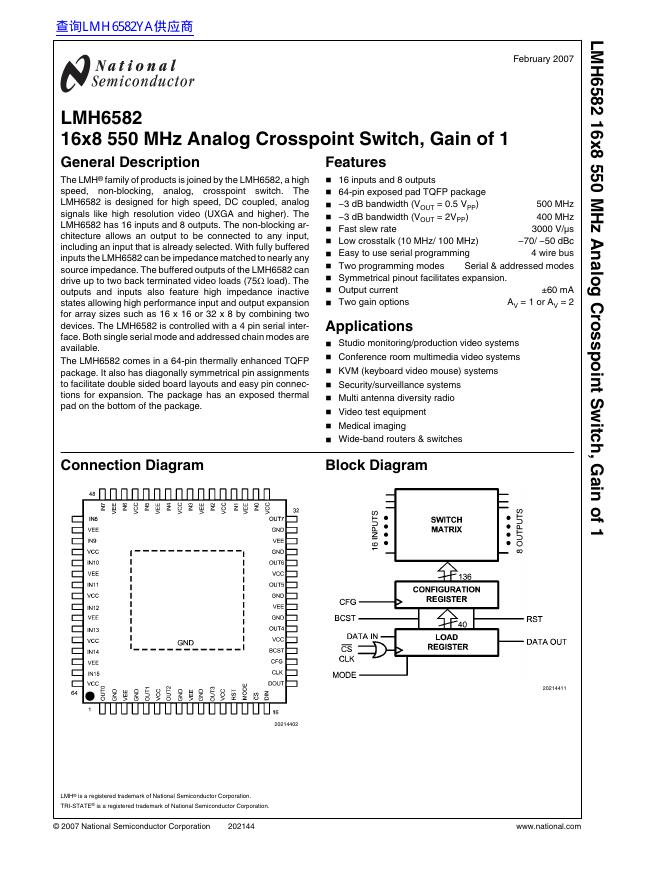 NATIONAL SEMICONDUCTOR - May 27, 2008 DS15BA101 1.5 Gbps Differential Buffer with Adjustable Output Voltage General 说明书