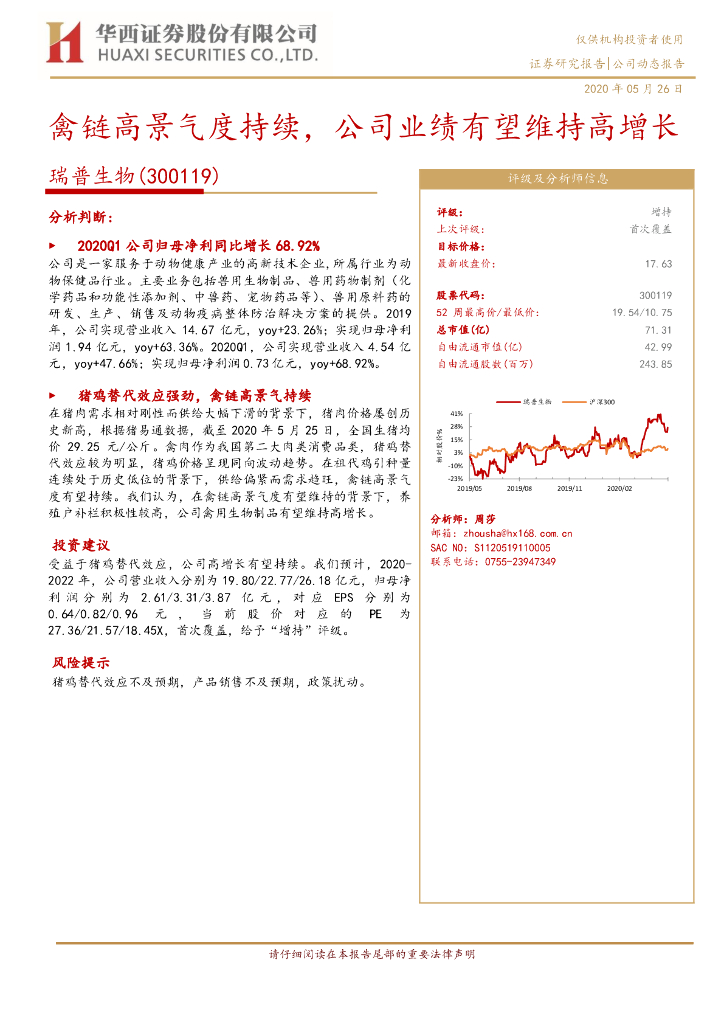 华西证券:瑞普生物(300119)-禽链高景气度持续,公司业绩有望维持高增长.pdf