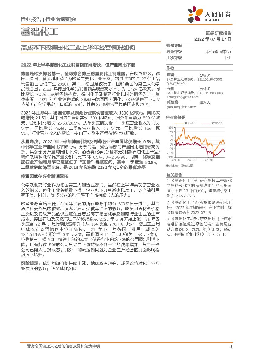 天风证券:基础化工行业专题研究:高成本下的德国化工业上半年经营情况如何.pdf