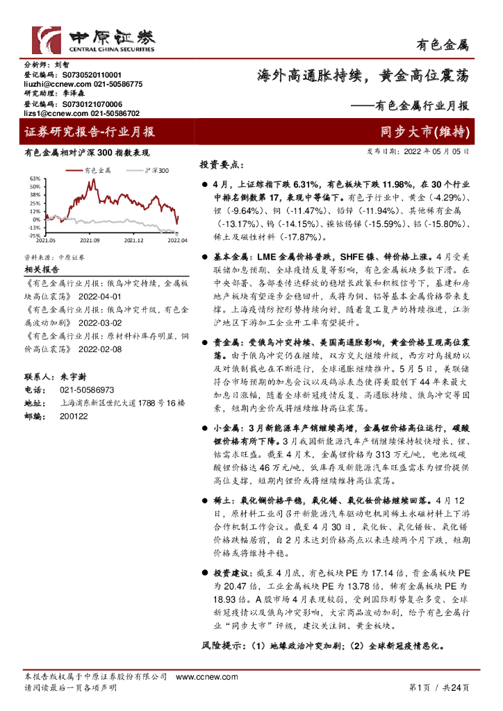 中原证券:有色金属行业月报:海外高通胀持续,黄金高位震荡.pdf