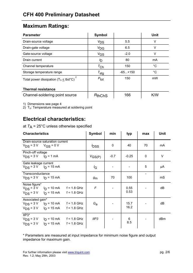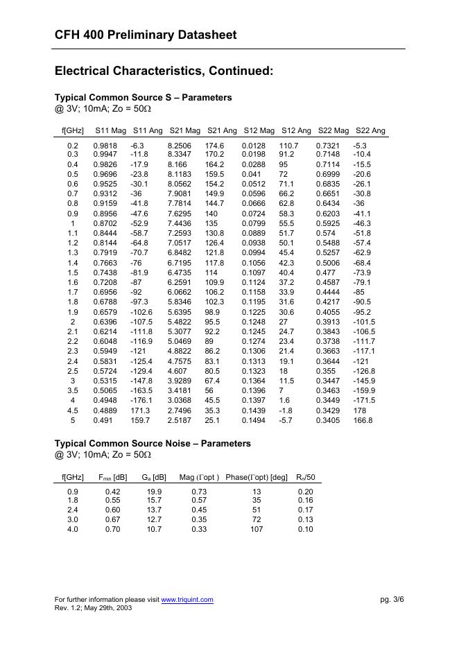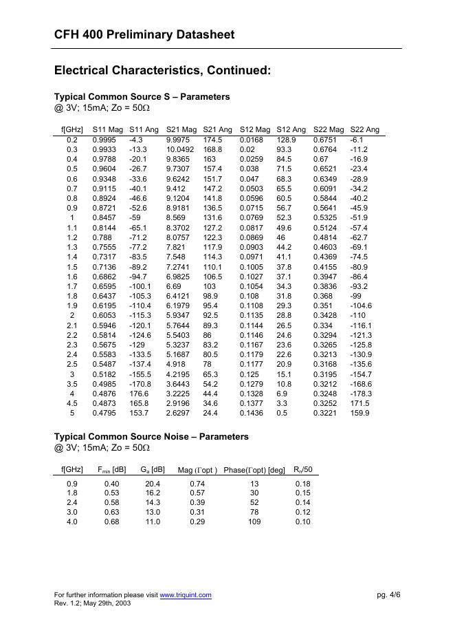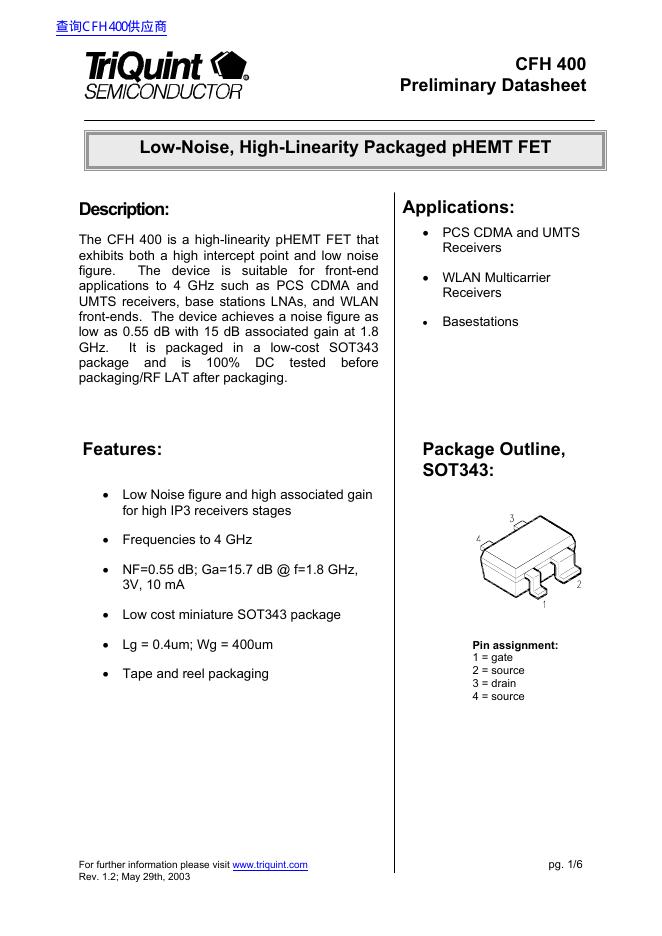 TriQuint Semiconductor CFH 400 数据手册.pdf