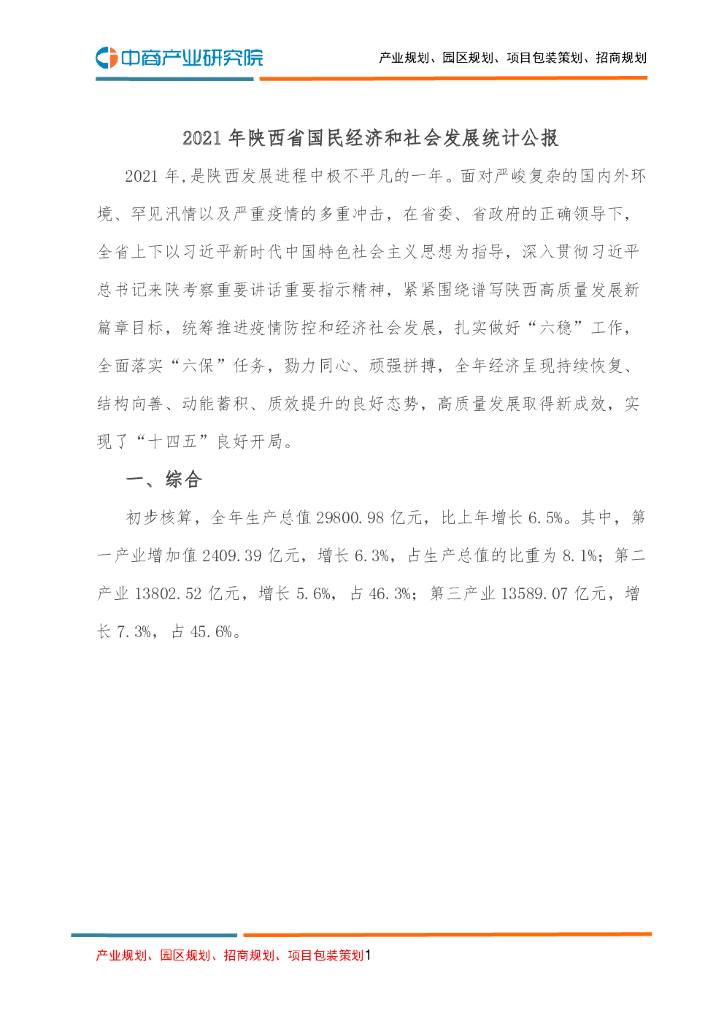 2021年陕西省国民经济和社会发展统计公报.pdf