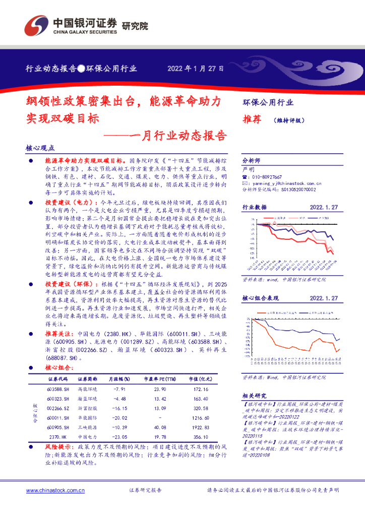 中国银河:环保公用一月行业动态报告:纲领性政策密集出台,能源革命助力实现双碳目标.pdf