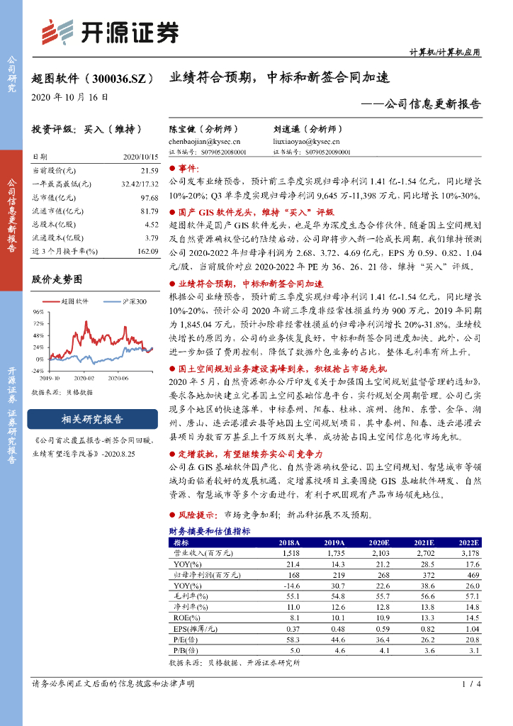 开源证券:超图软件(300036)-公司信息更新报告:业绩符合预期,中标和新签合同加速.pdf