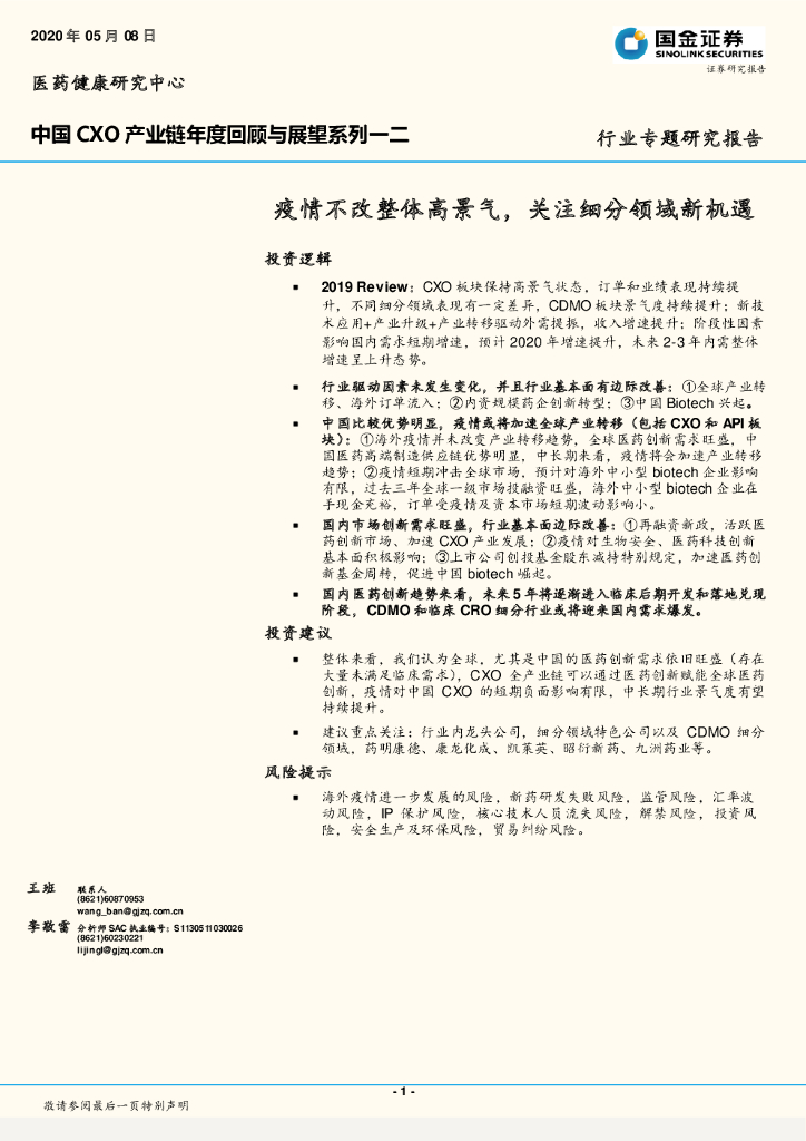 国金证券:中国CXO产业链年度回顾与展望系列一二:疫情不改整体高景气,关注细分领域新机遇.pdf
