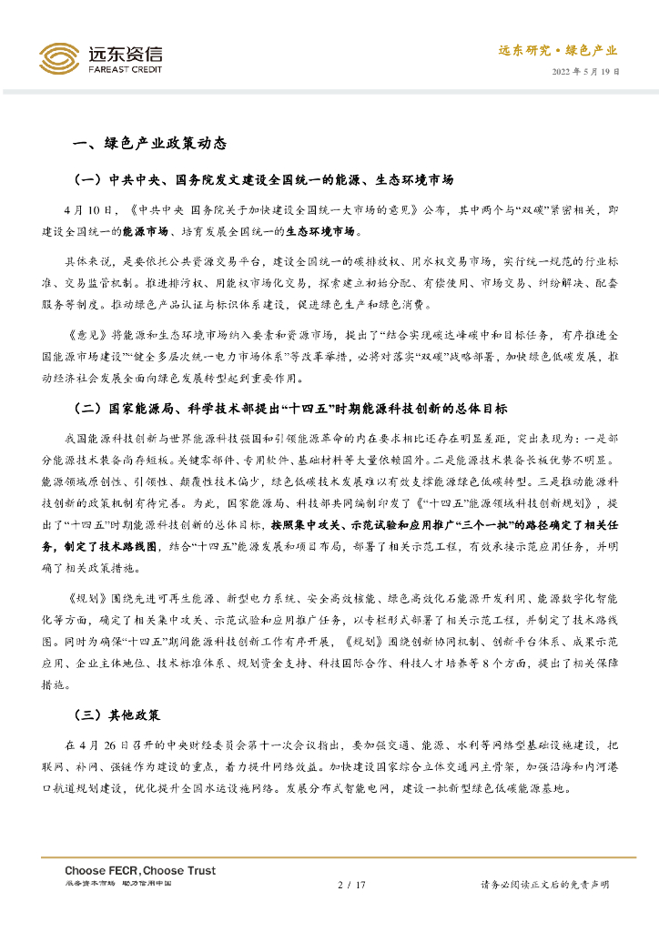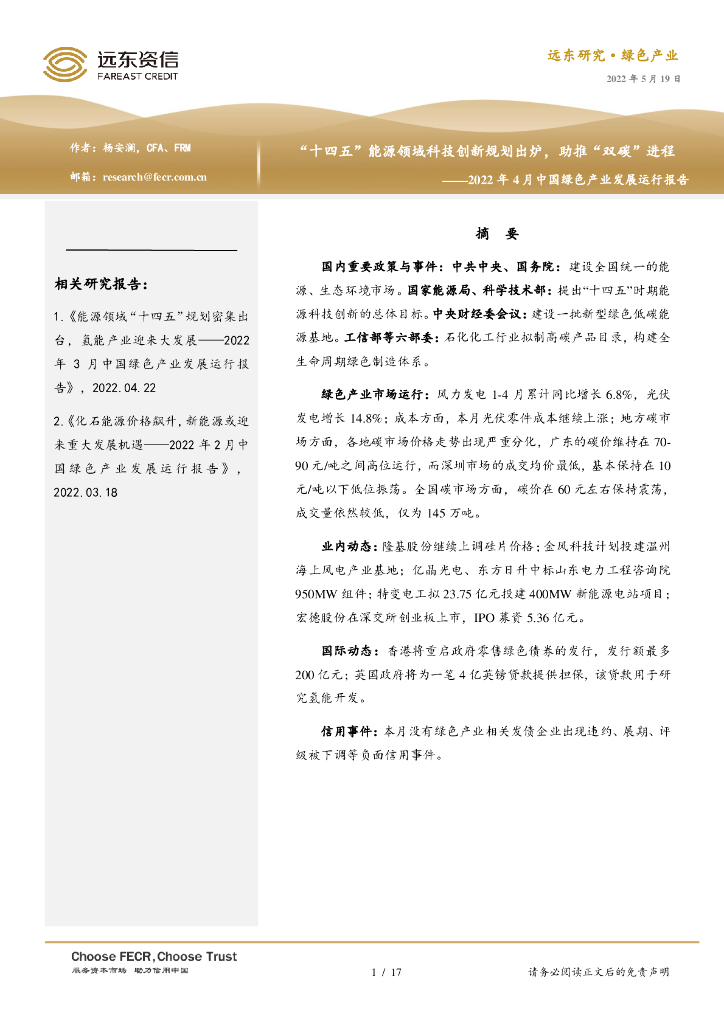 远东资信:“十四五”能源领域科技创新规划出炉,助推“双碳”进程——2022年4月中国绿色产业发展运行报告.pdf